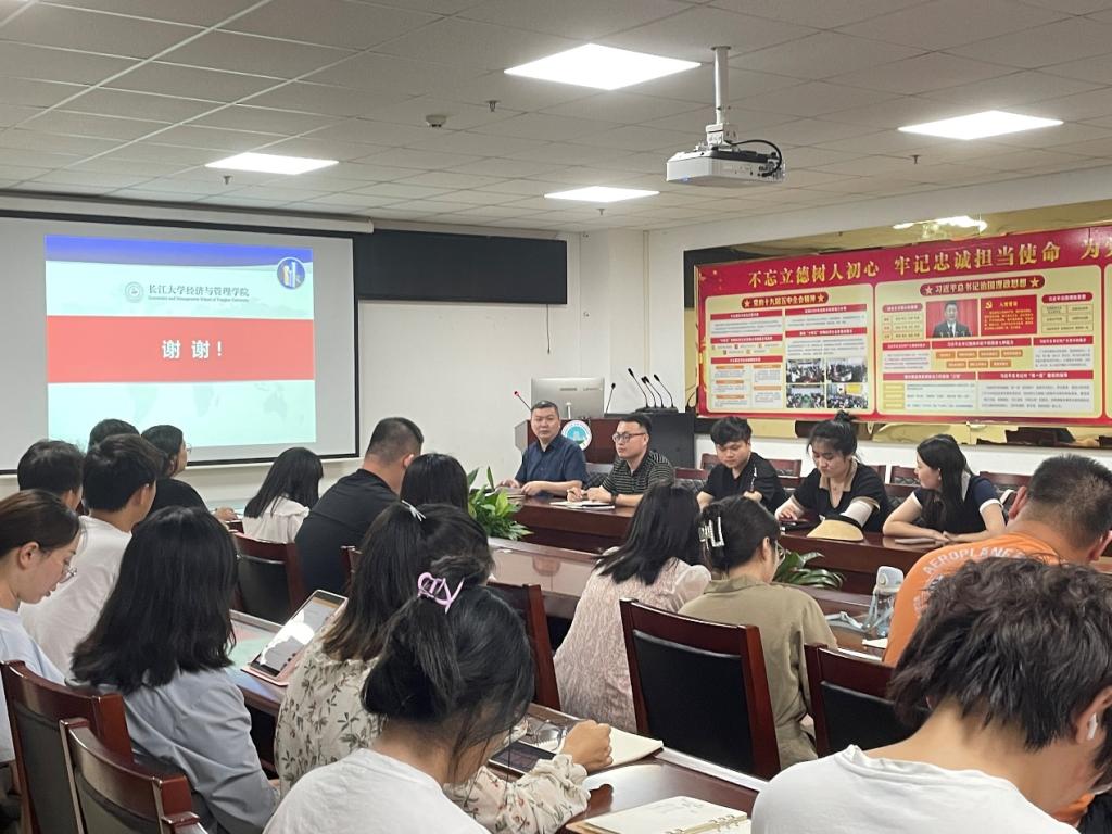 (通讯员:张悦)为全面贯彻落实党中央关于全党大兴调查研究的重大部署,进一步加强和改进调查研究工作,2023年6月20日,经济与管理学院在文科楼505会议室开展学习贯彻习近平新时代中国特色社会主义思想主题党课系列活动——如何开展调查研究,此次党课由学院院长徐辉主讲,研究生党支部全体党员参加。