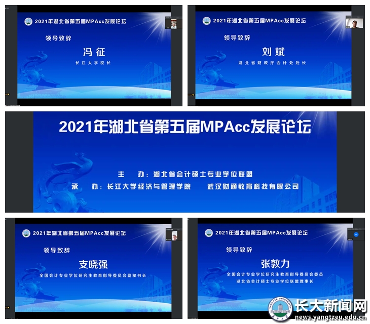 新闻网讯(记者 汤慧珍)8月17日,由湖北省会计硕士专业学位联盟主办,长江大学经济与管理学院、武汉财通教育科技有限公司联合承办的“湖北省第五届MPAcc发展论坛”在我校成功举办。论坛以线上形式开展,来自中国人民大学、西安交通大学、中国财政科学研究院、武汉大学、华中科技大学、中南财经政法大学、中国地质大学、武汉理工大学、云南大学、南京审计大学等30所省内外会计硕士培养单位及中铁大桥局集团有限公司、《财会月刊》杂志社、大信会计师事务所等7家企事业单位的250余位领导、师生和业内人士受邀参加论坛。全国会计专业学位研究生教育指导委员会、湖北省财政厅会计处的专家到会指导。