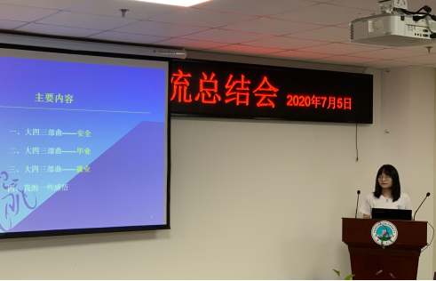 7月5日,经济与管理学院远航工作室举行辅导员讲坛第四讲,辅导员朱翠玲以“大四年级三部曲”为题做交流分享。