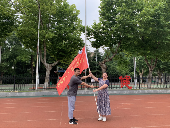 六点五十分,全场师生合唱《我和我的祖国》献礼建党100周年。七点整,升旗仪式正式开始。随着《义勇军进行曲》的响起,鲜艳的五星红旗冉冉升起,迎风飘扬,全体师生共唱国歌行注目礼,表达了对祖国的热爱和对国旗的尊重。