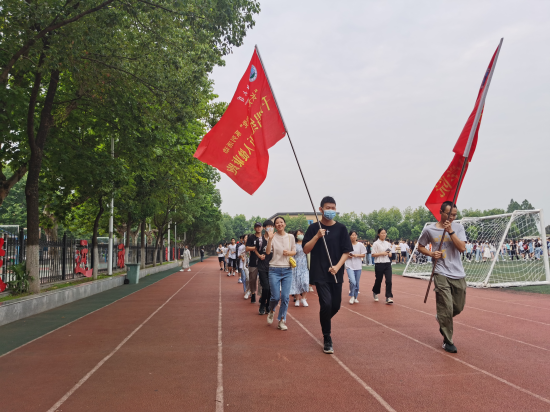 最后,教育与体育学院的文晓武老师为我院授旗,王书记代表学院接受授旗,并宣布“千班唱红歌,万人健康跑”开跑,全体学生围绕操场齐跑两圈。