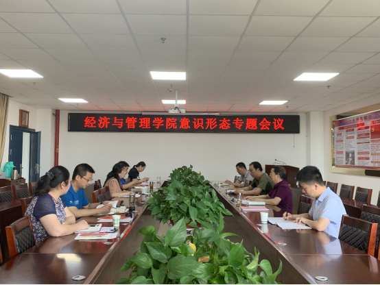 2021年6月7日下午14:30分,经济与管理学院在文科楼505会议室召开关于意识形态领域专题研究会。学院全体领导、院办公室主任和党建秘书参加会议,会议由学院党委书记樊帆主持。