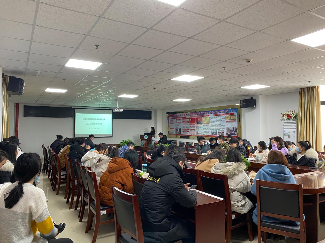 (通讯员 王雪婷)12月18日上午十点,长江大学第二届研究生讲师团宣讲活动经管学院专场在文科大楼615会议室开展。本次活动邀请讲师团成员郭先哲作题为“中国道路的未来-新时代坚持和发展中国特色社会主义的奋斗目标”的宣讲。我院研一研二研究生参加,学生会主席何浩奇主持活动。