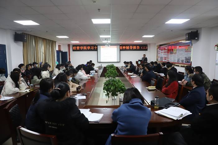 (通讯员 黄承石)12月10日下午15点,经济与管理学院在文科楼505会议室举行十九届五中全会精神宣讲,学校党委副书记王建平主讲,学院党委书记樊帆主持,院长徐辉、学院领导、老师和学生代表参加。