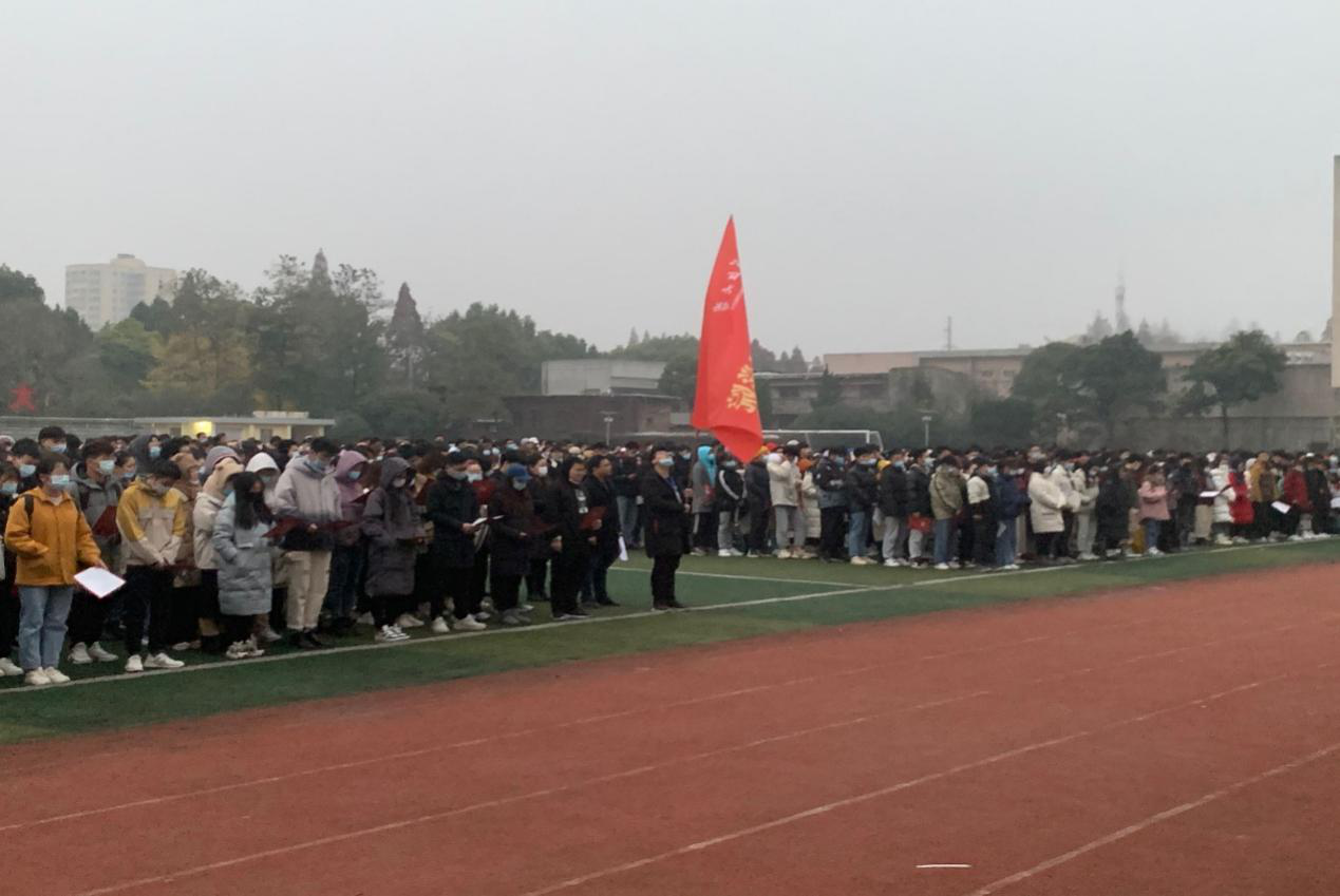 (文:何志瑞 图:杨子嵩)2020年12月7日上午七点至七点半,经济与管理学院第十五周升旗仪式在东校区田径场顺利举行。学院党委副书记王中梅、学工办主任陈思杭及18、19级全体学生参加本次升旗仪式。
