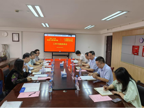 当日下午,江西财经大学工商管理学院院长胡海波、党委书记贺三宝、副院长王鑫、党政办公室主任许丽艳和案例中心主任胡京波对我院一行的到访表示诚挚欢迎。座谈会上,胡海波院长详细介绍了该院的发展历程、办学特色与突出成就。并重点介绍了学院在案例教学开发与应用、“AI+”数字化赋能教育教学与管理等领域的最新进展。随后,双方围绕学院党建与思想政治工作的引领保障作用、历史文化传承、学科专业建设、产教融合模式创新、科研水平提升、高素质人才培养体系以及社会服务贡献等方面进行了交流与探讨。