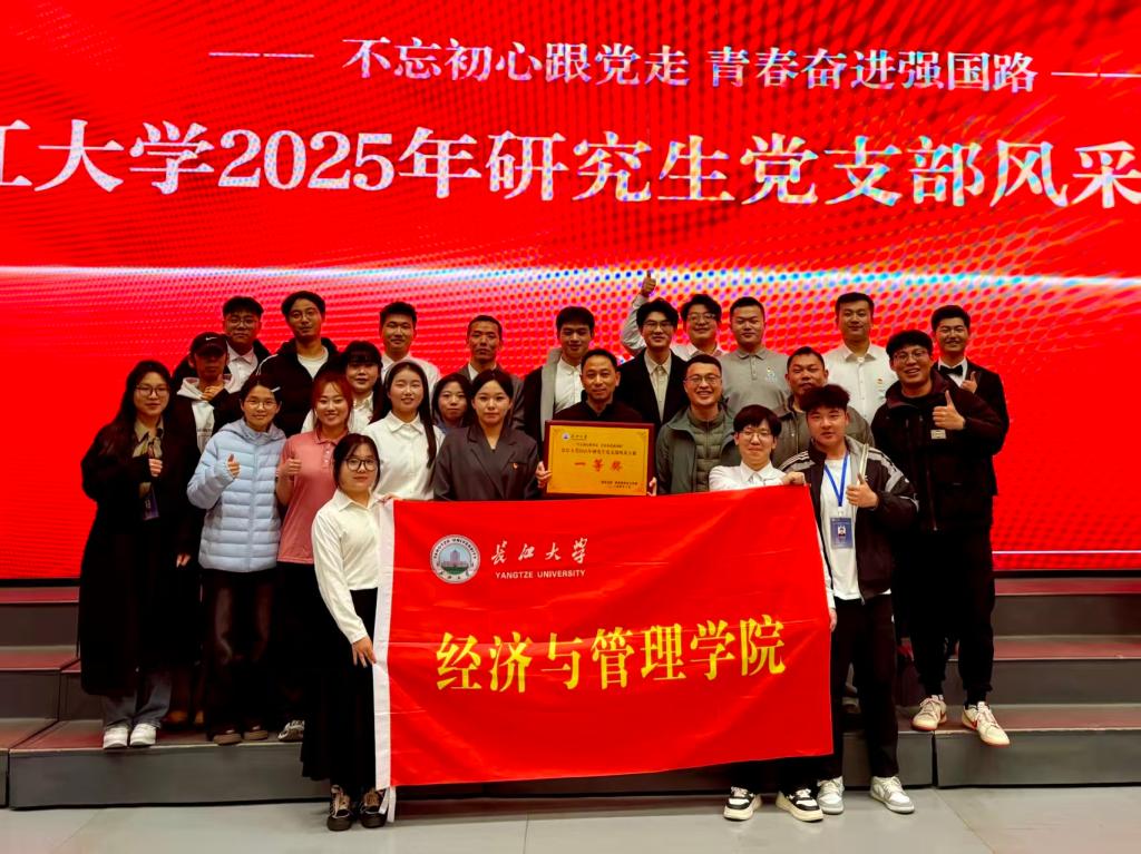(通讯员 凌澜卿)12月10日晚上,长江大学2025年研究生党支部风采展决赛在长江大学东校区大礼堂圆满落幕。经济与管理学院研究生第一党支部在活力创新展示《经管星火,点亮乡土》的精彩演绎与应知应会知识测试环节表现出色,脱颖而出,成功斩获一等奖,充分展现了支部成员极强的团队协作精神、扎实的理论功底与昂扬的青春风貌。
