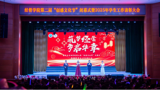 (通讯员 熊新颖 欧阳佩文/文 李易研 侯景宜 姜瑜欣/摄)岁聿云暮,新章将启。2025年12月21日晚,长江大学经济与管理学院第二届“创感文化节”闭幕式暨2025年学生工作表彰大会在东校区大礼堂隆重举行。学校学生就业工作处处长徐波、党委研究生工作部部长关辉、党委学生工作部部长张科、校团委书记沈谦等职能部门负责人,马克思主义学院党委书记刘小燕、园艺园林学院党委书记王辉等各学院领导,与我院党委书记李喜成、副院长何蒲明、副院长裴潇、副院长王华强、党委副书记平先锋等党政班子成员、全体教师及千余名学子齐聚一堂,共溯年度耕耘,同迎锦绣新程。