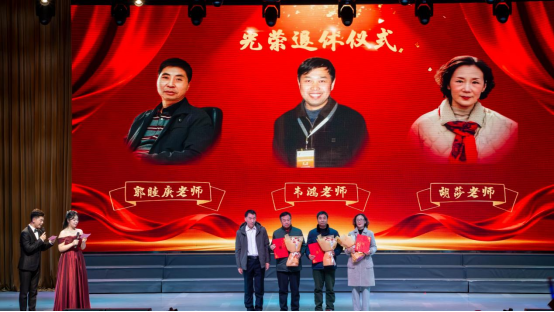 随后,学院党委副书记平先锋宣读2025年度学生与教师系列表彰决定,与会领导为获奖代表颁奖。大会特设荣休教师致敬环节,学院党委书记李喜成为郭睦庚、韦鸿、胡莎三位老师颁奖,全场以热烈的掌声致敬他们高尚的教育情怀。