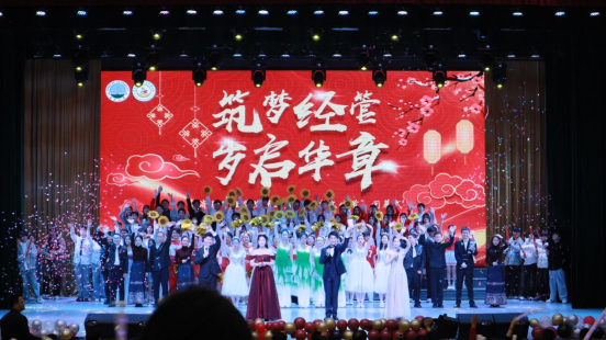 整场晚会以“筑梦经管,岁启华章”为主题,分设三大篇章。古典舞《茉莉花开》尽显国风韵味;小品《反诈联盟》传递安全常识;师生携手演绎的《光辉岁月》唱响拼搏与传承的时代强音;教师舞蹈《可爱摆》展现讲台之外的别样风采。乐队表演、歌曲串烧、啦啦操等节目精彩纷呈。穿插其间的多轮互动抽奖,更不断将现场气氛推向高潮。