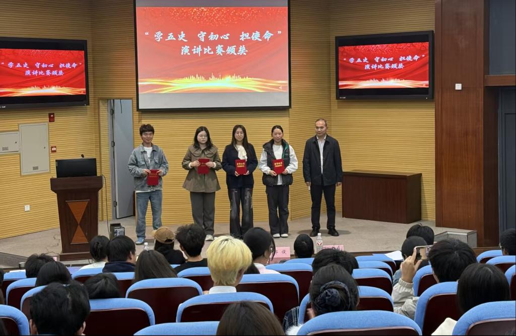 (通讯员 娄君庭 薛诗宸/文 张俊翔/摄)为深化“五史”学习教育,激发广大学生的爱国热情,2025年10月28日,长江大学经济与管理学院在长江大学西校区农科大楼1056报告厅举办“学五史,守初心,担使命”主题演讲比赛。学生干部薛诗宸主持活动,辅导员娄君庭、郭俊以及学生干部张俊翔、樊佳慧、冉佳佳共同担任评委,学院2025级本科生代表组成大众评审团参与现场评议。