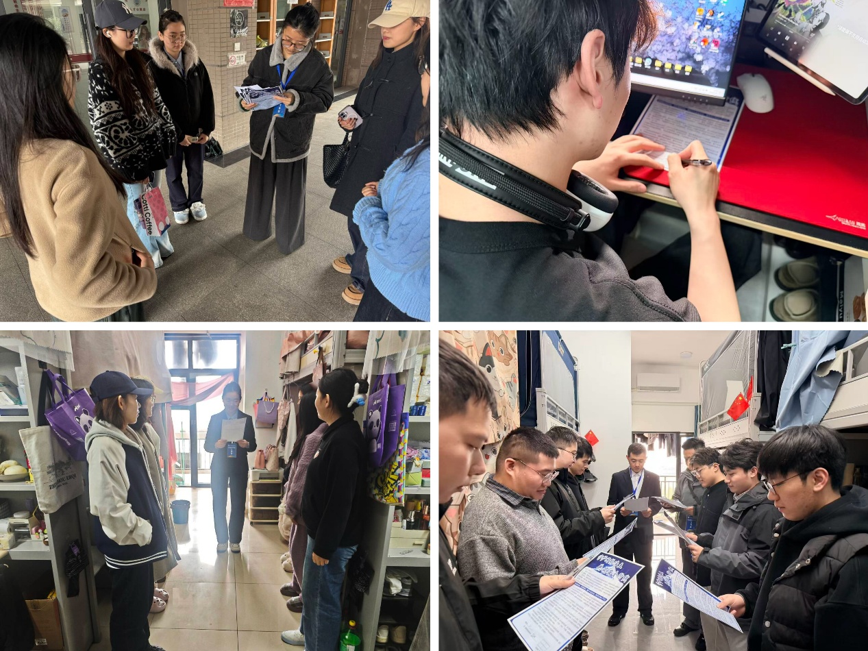 (通讯员 王玉菲)为引导研究生树立网络安全与信息保护意识,2026年3月26日中午,我院研究生安全教育宣讲团深入学生宿舍,开展“守护网络净土,共筑安全防线”主题宣讲活动。