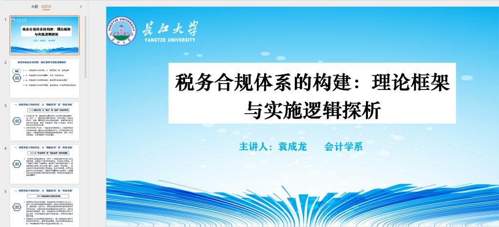 袁成龙老师以《税务合规体系的构建:理论框架与实施逻辑探析》为主题进行学术分享。深入剖析了税务合规计划的概念重构、内涵特征与演进逻辑,基于业财法税融合视角分析税务合规计划的基本原则与价值链逻辑,重点剖析合理商业目的原则、实质性运营原则、实质重于形式原则的现实应用,并从动机检验、人为状态检验、受益检验、法律条款检验等方面阐释税务合规的法律检验手段,引入归谬检验规则、常识检验规则、朴素正义检验规则,探索企业财税合规的判断流程与实现路径,为财税合规计划的实践操作提供了应用指引。