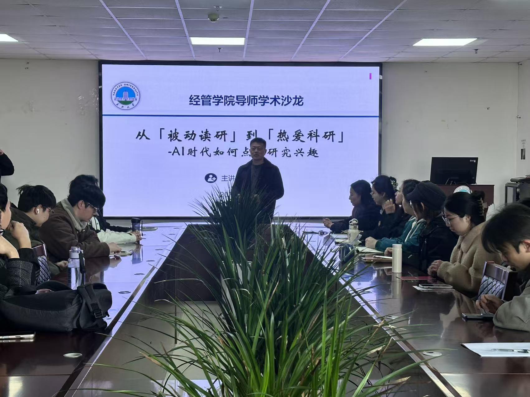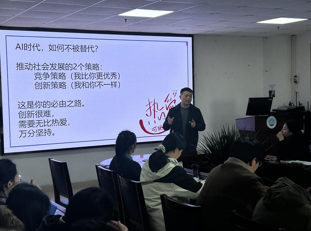 (通讯员 陈情阳)2026年3月12日下午,经济与管理学院第二十一期“求实导师学术沙龙”在文科楼505会议室举行。王华强副院长担任主讲人,讲座主题为“从被动读研到热爱科研—AI时代如何点燃研究兴趣”,学院研究生代表40人参与活动。
