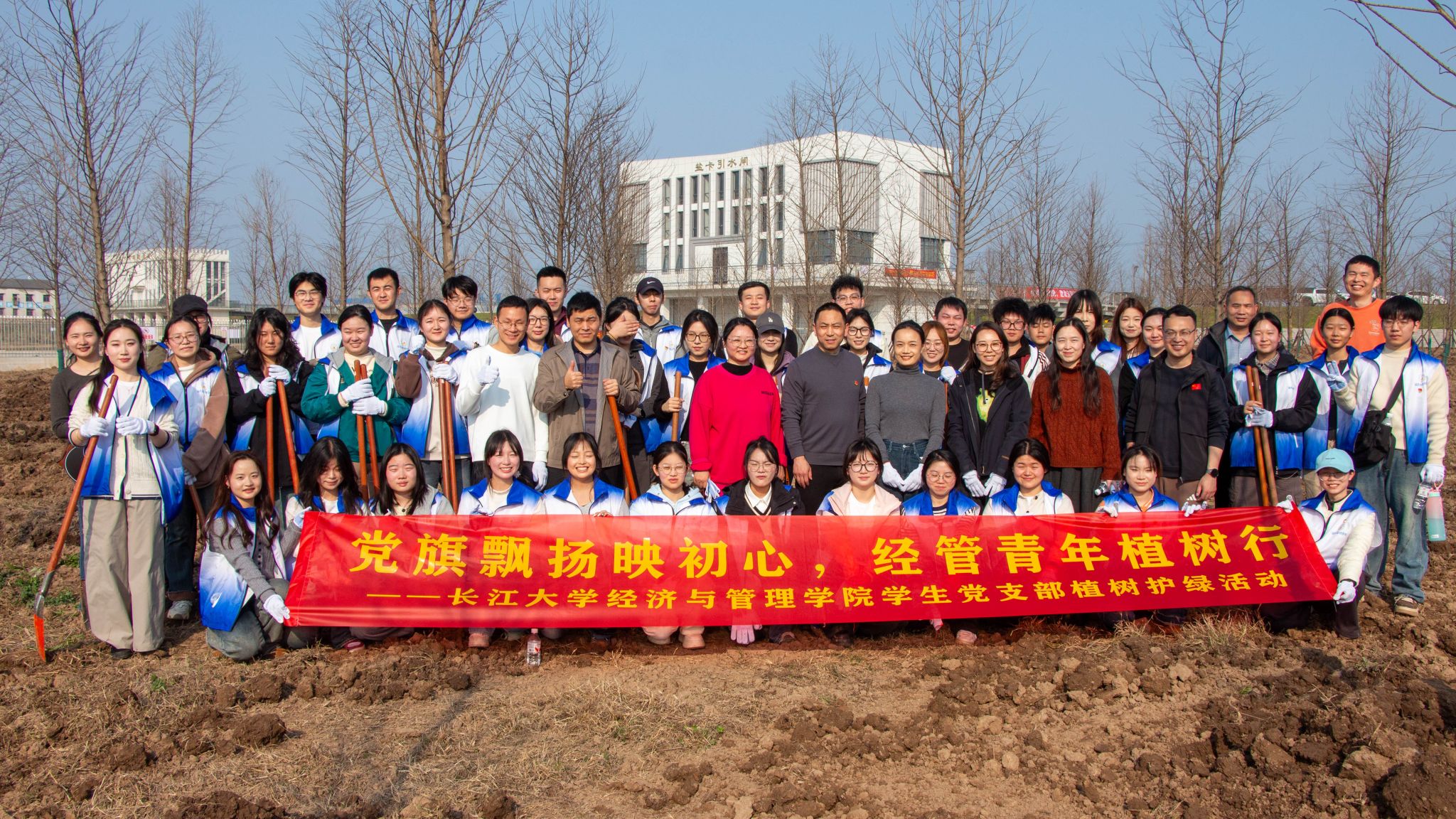 (通讯员 韩梦彦 杨义航)春风拂面,万物复苏。3月11日,在第48个植树节到来之际,长江大学经济与管理学院学生党支部积极响应“绿水青山就是金山银山”的生态理念,在学院党委副书记平先锋、全体辅导员老师的带领下,组织管理系本科生党支部全体党员、研究生党支部全体党员,前往荆州市盐卡泵站开展“党旗飘扬映初心,经管青年植树行”三月主题党日活动,以实际行动为长江沿岸增添新绿,用青春热情守护荆楚大地的绿水青山。